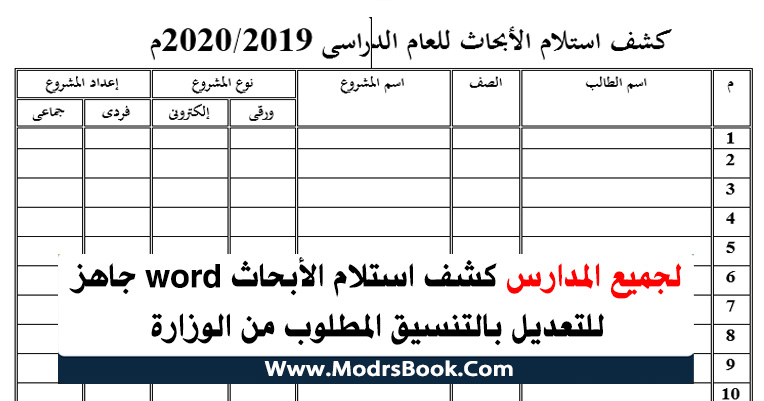 لجميع المدارس كشف استلام الأبحاث Word جاهز للتعديل بالتنسيق المطلوب من الوزارة